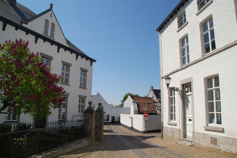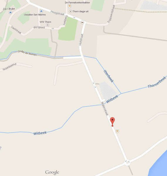 Parkeerplaats aan de waterstraat. De borden volgen P waterstraat. Rustige plaats achter de kasteelhoeve De Grote Hegge. Het witte stadje Thorn op loop afstand.